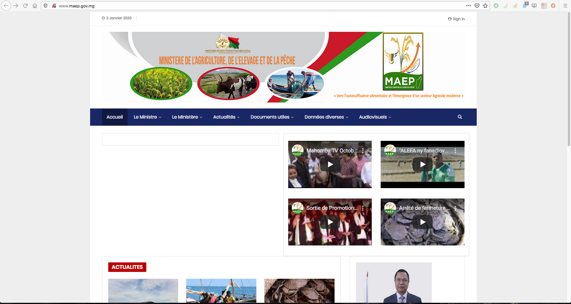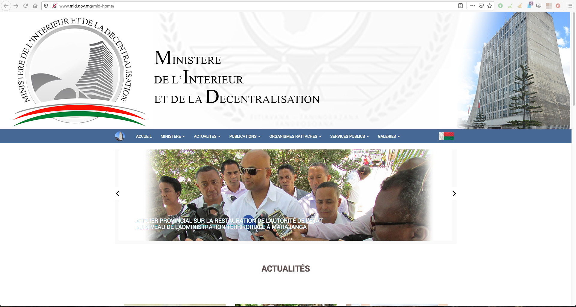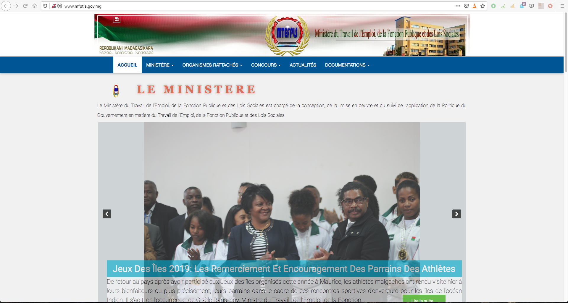 Nous l'avons déjà écrit auparavant, c'est dommage que le site de la Primature ne donne pas les liens url des sites de chaque Ministère. Pour les trouver, il vous faut votre moteur de recherche. Ces liens peuvent être insérés en dessous du lien vers "la page CV" de chaque Ministre. La majorité des sites web des Ministères est propulsée par WordPress. Leur mise à jour respective varie selon la force de travail de leur service de communication. Il en est de même de la qualité et quantité d'information mise en ligne. La majorité des sites ministériels ne dispose pas non plus des certificat SSL.