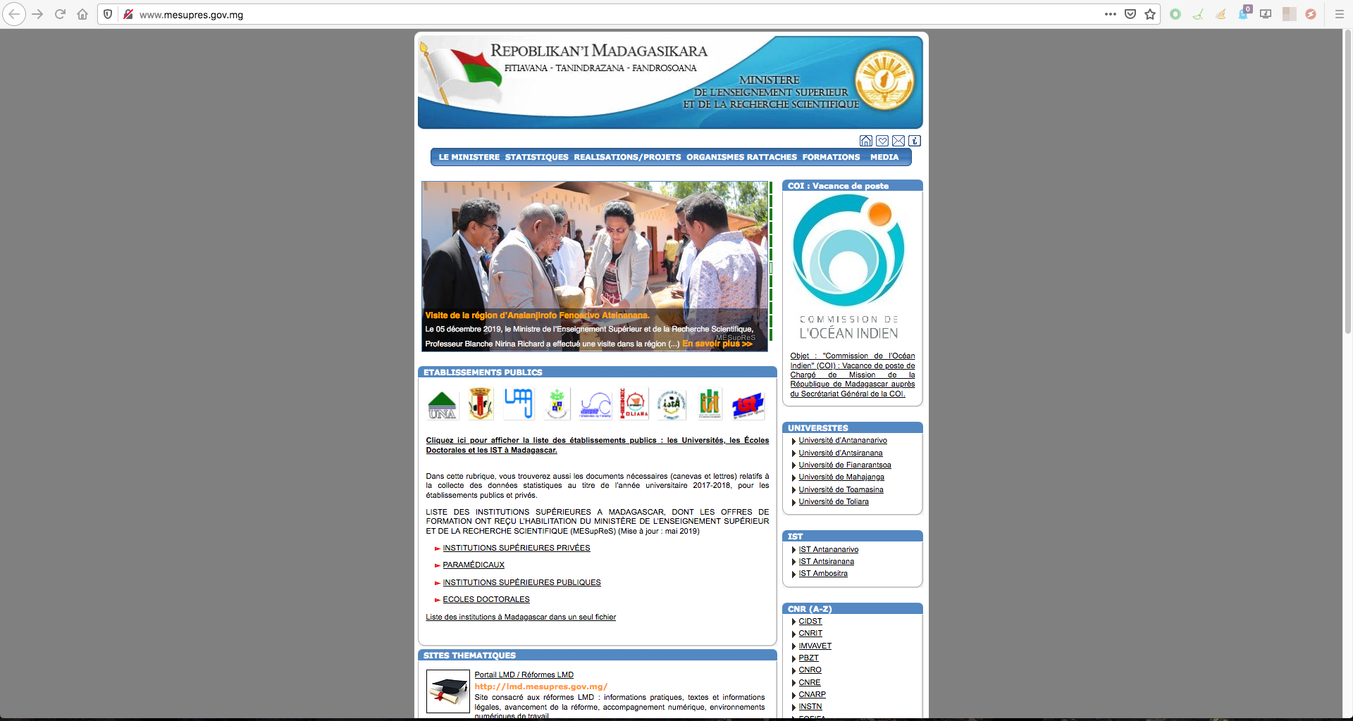 Les administrations publiques malagasy sont bien présentes sur la toile, hormis les communes et autres collectivités territoriales. Leur présence "institutionnelle" s'harmonise à la réalité politique. Par exemple, à l'occasion d'un remaniement ou d'un changement à la tête d'une administration. Même s'il y a une grande disparité d'une administration à une autre, une certaine continuité dans l'art de communiquer numériquement est appréciable et s'installe de plus en plus dans les nombreux services de communication des Administrations. Il y a encore si peu de temps de cela, il arrive qu'un Ministère dispose de deux ou trois sites en ligne en même temps.